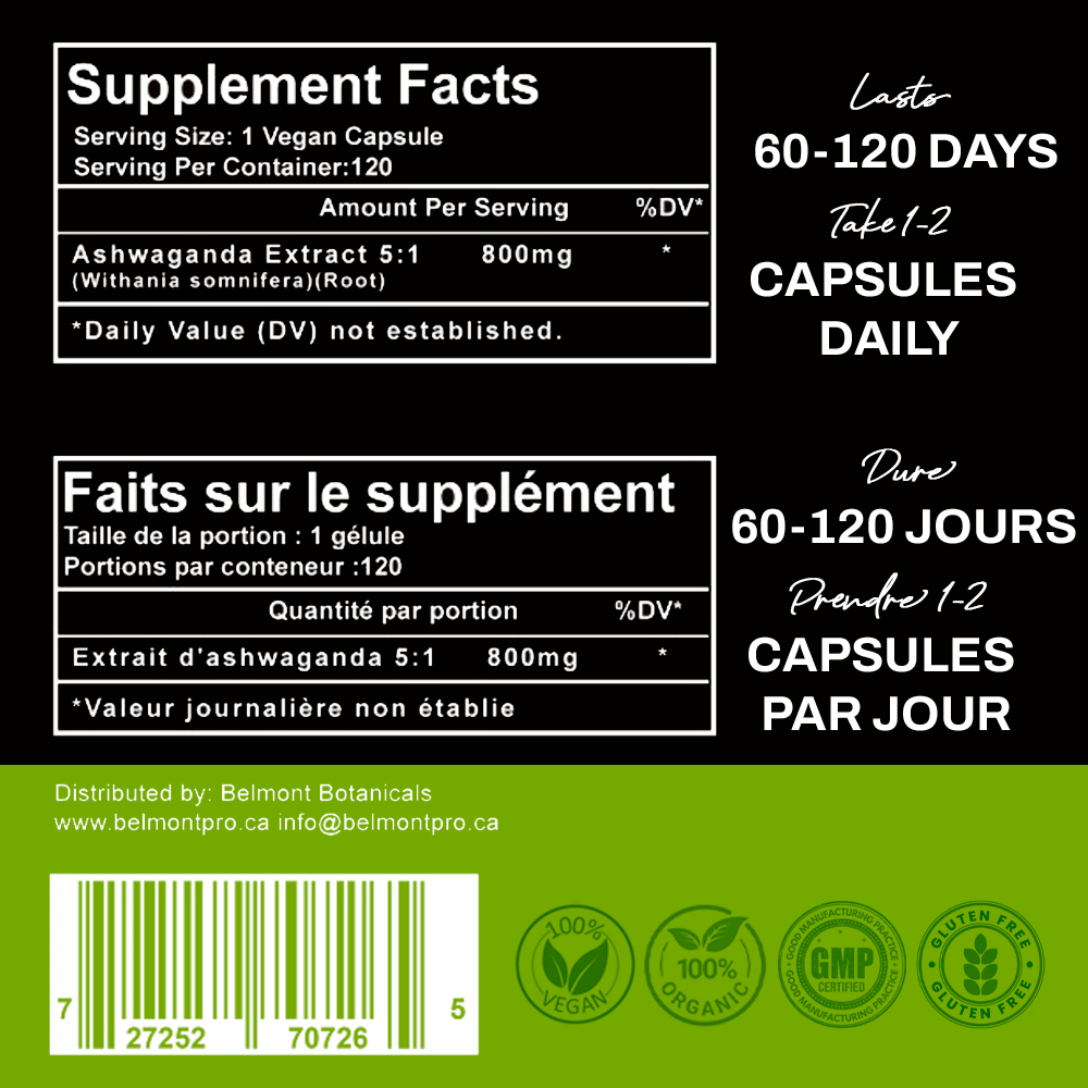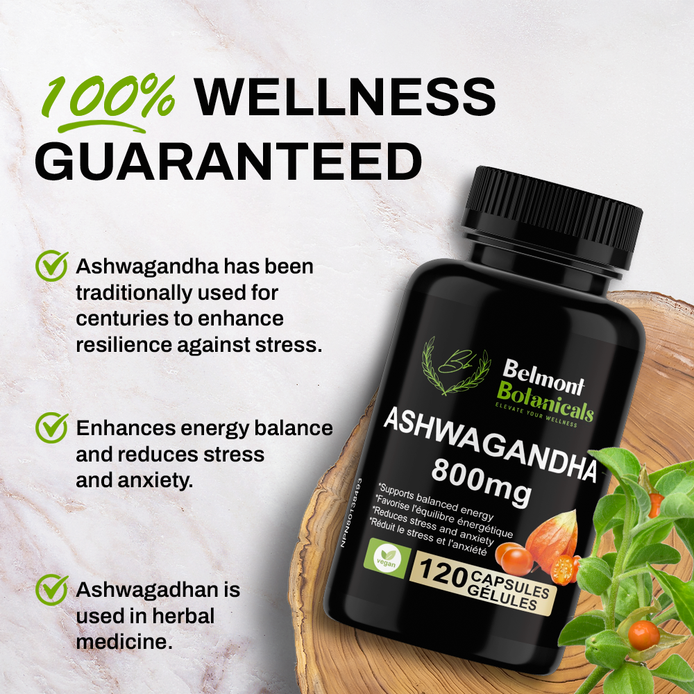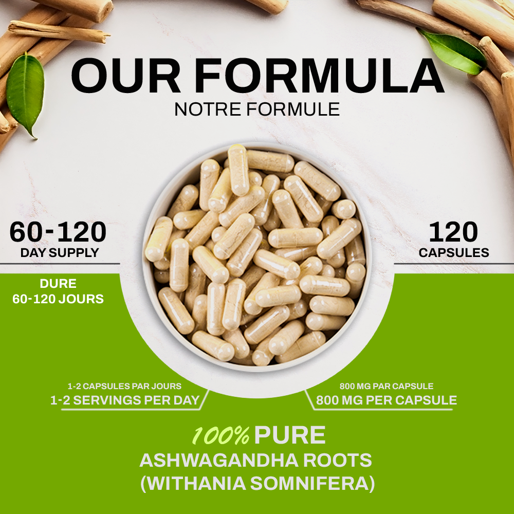 100% Pure Ashwagandha Extract – Our Ashwagandha Capsules contain only natural ingredients with no synthetic additives. Every bottle is independently tested to ensure high quality and purity.Premium Quality & Benefits – Each serving provides 800mg of Ashwagandha, helping to reduce stress, support energy, and enhance focus for optimal health and wellness.